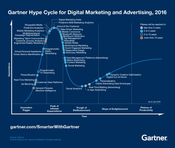 Every year, Gartner releases its Hype Cycle to track the evolution of various upcoming technologies, last year was the first time they released a separate one combining both digital marketing and advertising technologies. In itself, this can be taken as a sign of how inexorably linked these both functions are, something that was reiterated by their accompanying press release statement.