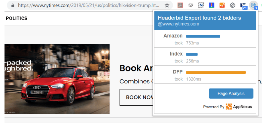 The sample NY Times Page here (in the screenshot above) sent requests to both Amazon and Index Exchange and both of them returned a bid in 753 ms and 258ms respectively.
