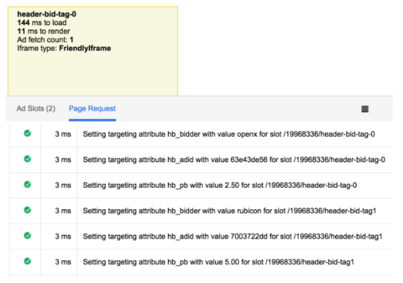 This is the easiest method out there to view the ad requests that were sent, the demand partners they were sent to, the responses received to those ad requests, and how much time the responses took.