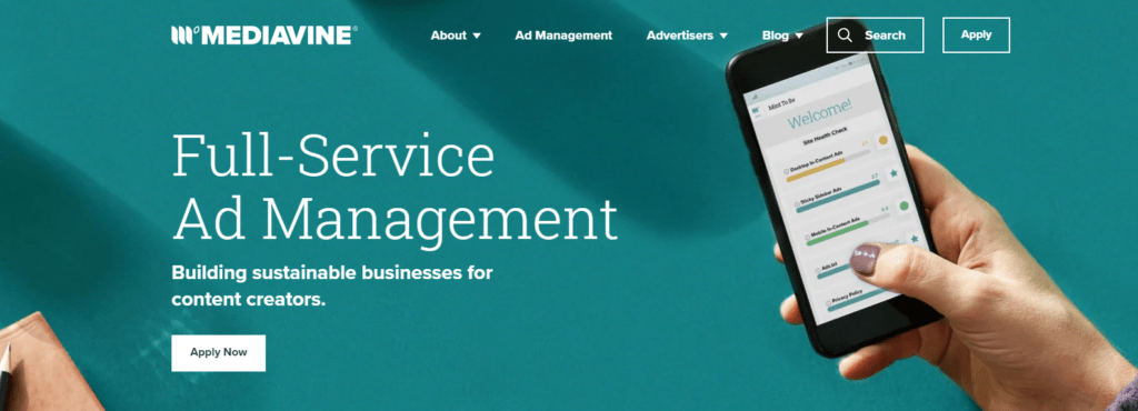 Next one of the top adsense alternatives in the list is Mediavine, which not only provides programmatic advertising opportunities but also offers website templates to publishers that are already ad-optimized. All you’d need to do is, fill in the dedicated space with the information about your product or service, make it live, and earn revenue from the ads.