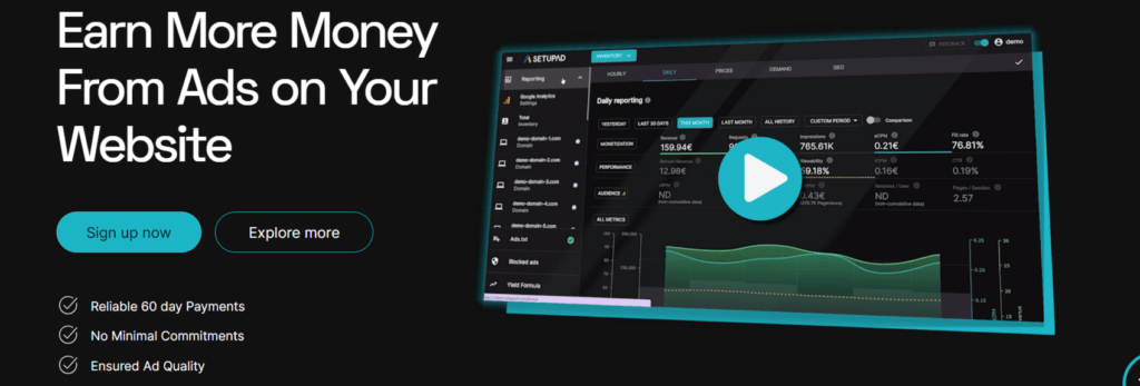 - Easy Tracking Features: The dashboard helps publishers and advertisers to keep track of performance metrics so they can improve their monetization strategy accordingly.