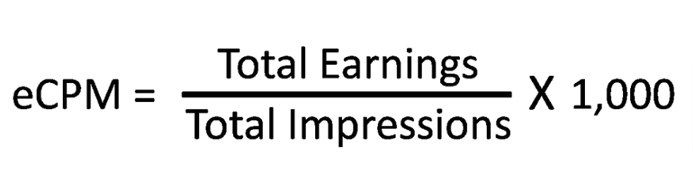 Formula to calculate eCPM = (Estimated earnings/total impressions)*1000