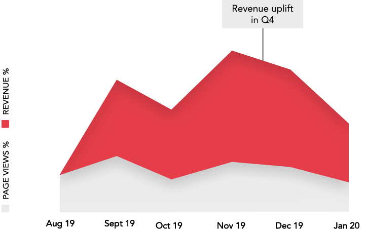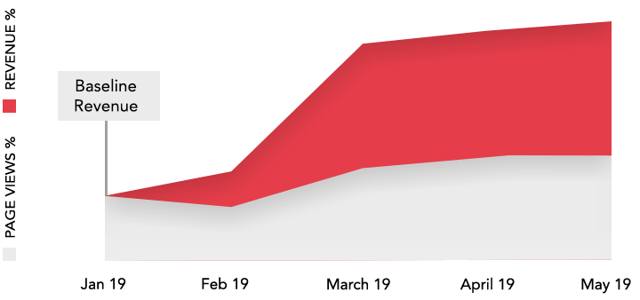 During this time frame, the website remained close to a flat line of page views. Though, with all the implementations, the publisher managed to receive an overall 233% increase in its ad revenue from baseline in working with AdPushup.