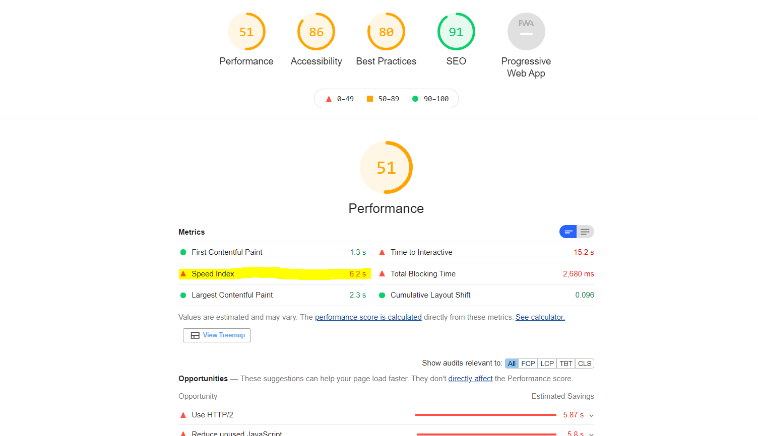 As depicted above, the report gives you a holistic view of your website’s condition, including the Performance > Speed Index which tells you about your current load time. - Google Analytics