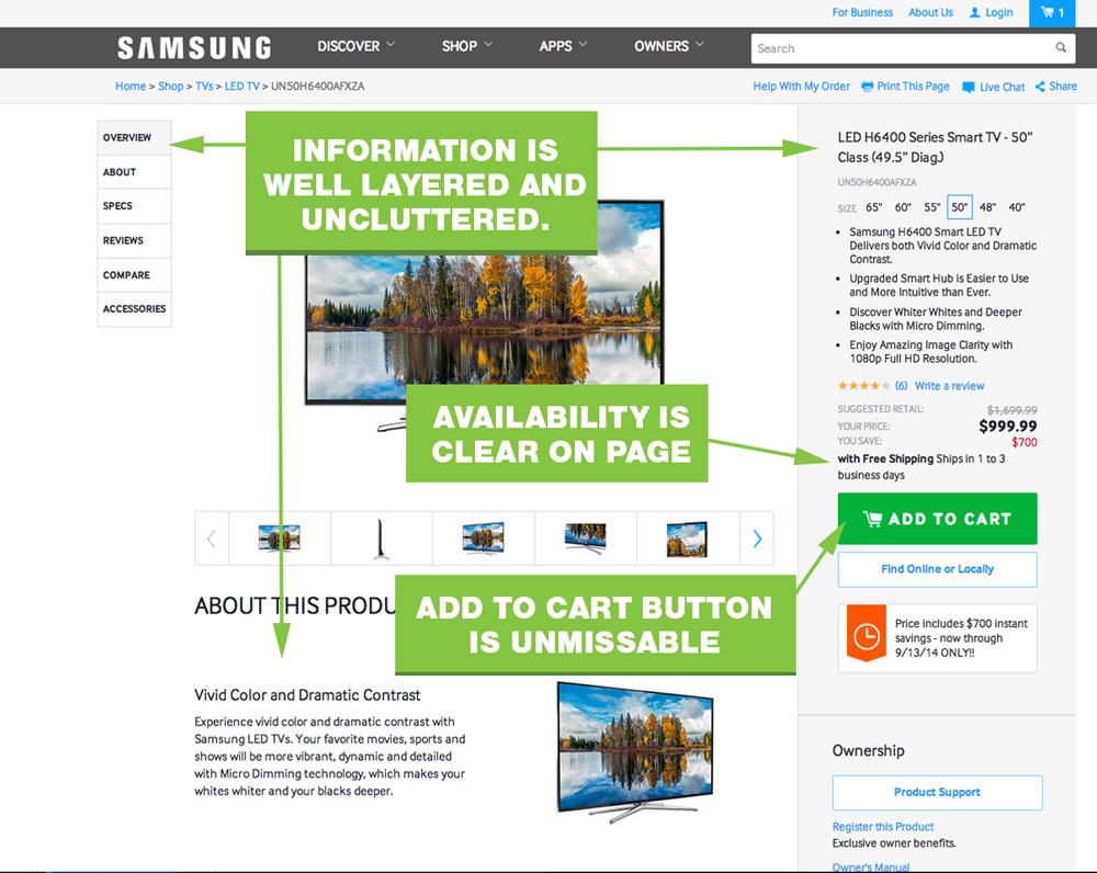 Think of a product page as a landing page to increase conversions. This also helps direct the visitor and makes it easier for them to get what they want. Many of the concepts here are identical to those described in Improvement #2: