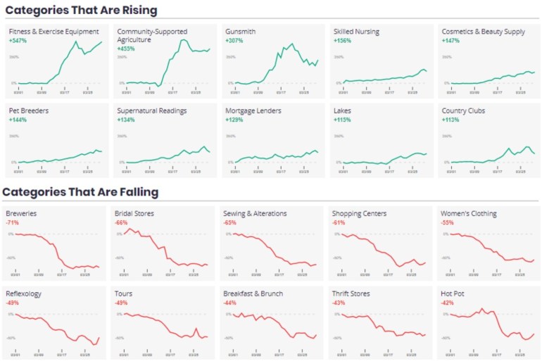 Since, there is a significant change in user’s behaviour because of the stay-at-home mandate, there is a major economic shift noticed across the globe. Yelp’s report shows an increase in traffic in fitness, sport, and pet breeder categories. While tourism, breweries, and shopping centers continue to go down.