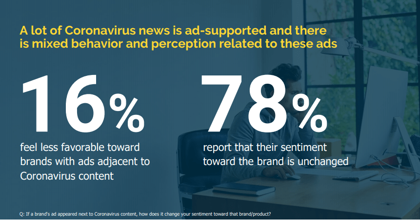 Consumers are likely to understand the relationship between free content and ads for monetization. IAS studies shows 78% users are fine with seeing ads on COVID-19 posts.