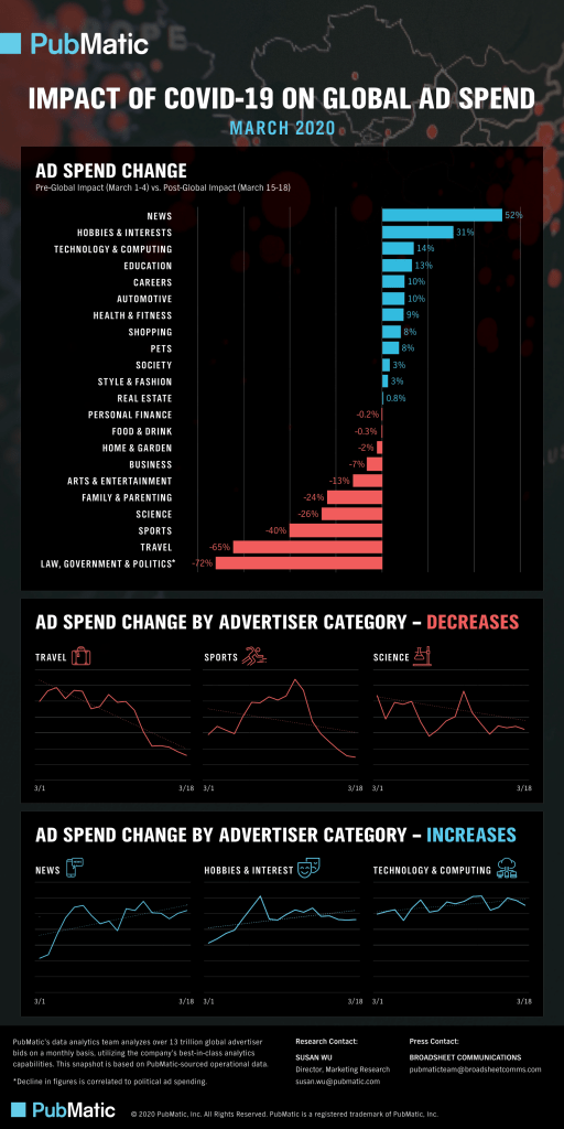 On the same note, Pubmatic released its data by analyzing 15 trillion advertisers’ bids that showed increased ad spend in the news, hobbies, computer, and technology categories.