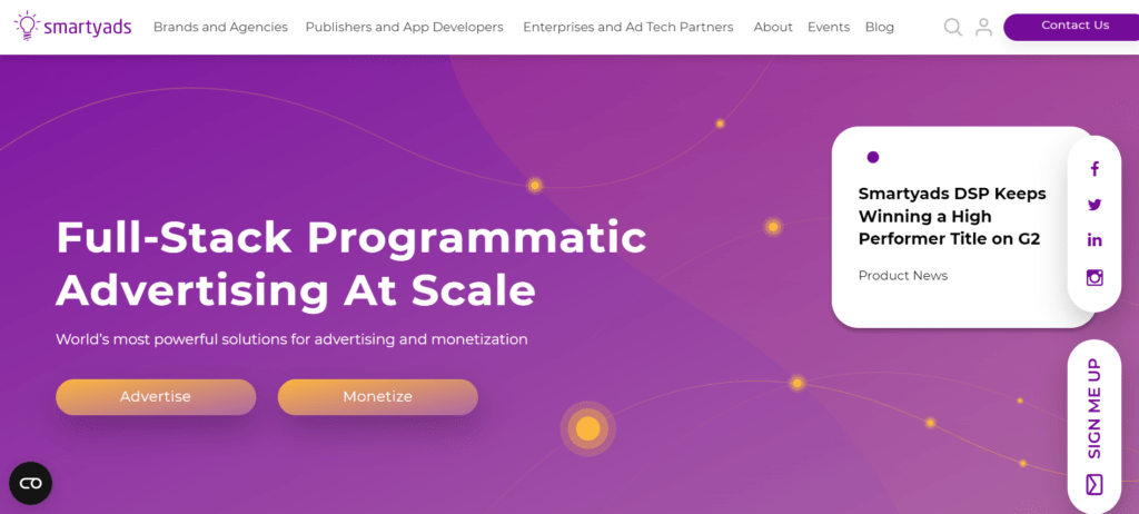 SmartyAds is a programmatic advertising platform that allows advertisers to buy and manage ad campaigns across multiple channels and formats. It offers a range of features, including advanced targeting, real-time bidding, and custom reporting.