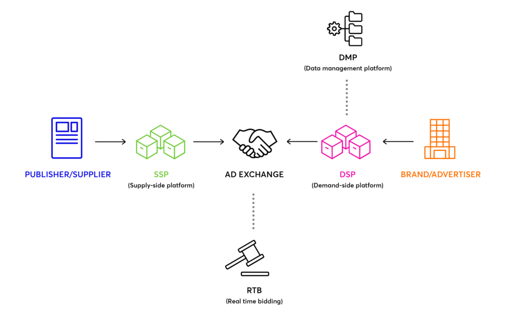 A Data Management Platform is software used to store, manage, and organize data, mainly for advertisers, marketers, and publishers. Technically, DMP uses first-party (emails, names, telephone numbers), second-party (other websites, companies, advertisers), and third-party data (cookie IDs and mobile identifiers) to target the audience accurately.